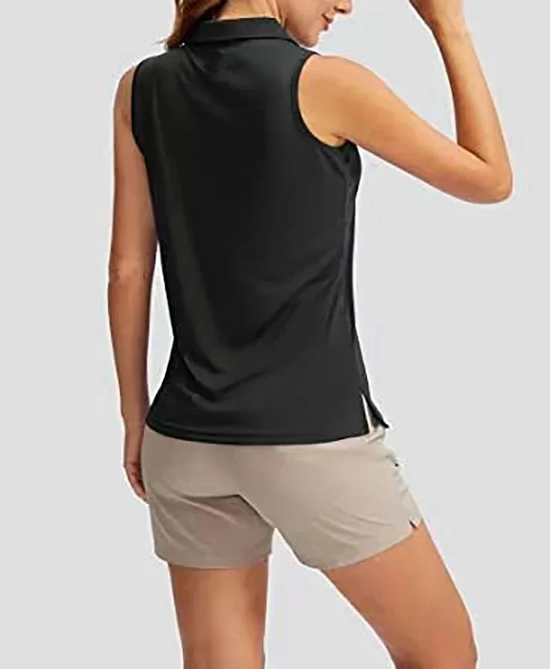 Optimaler Komfort und Bewegungsfreiheit: Das Klarissa Tanktop ist aus atmungsaktivem Material gefertigt, das Sie während jeder Aktivität kühl und trocken hält. Der umklappbare Kragen verleiht einen klassischen sportlichen Touch, während das ärmellose Design optimale Bewegungsfreiheit bietet.